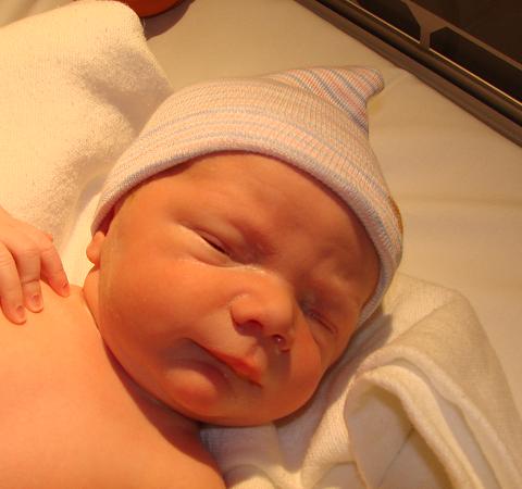 Happy Mother's Day. Here I am, a delightful Mother's day gift for mommy and the rest of the family. I was born at 9:49 in the morning, 6lbs 11oz and 20.5in. I am doing well, sleeping alot, snacking occasionally, poked and prodded often and generally just getting used to this new world.